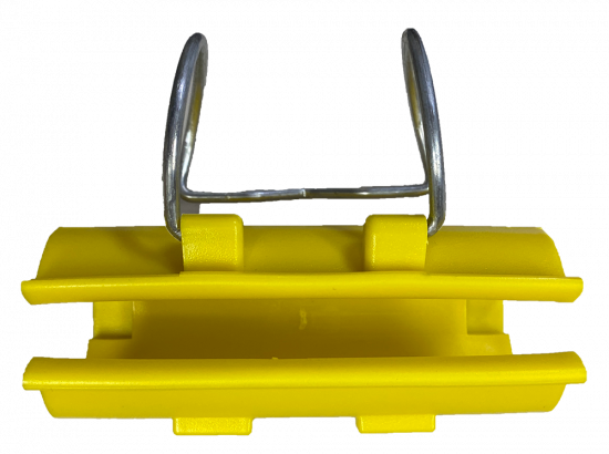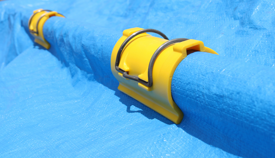 ・樹脂部分でシートをくわえ込み、その上から鉄のバネ材で抑えこむ構造になっており、強風に対しても外れにくい強度を持っています。