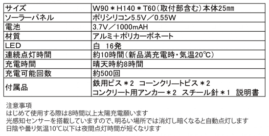 ・工事看板や資材置場など、電源の無い場所でも使用できます。